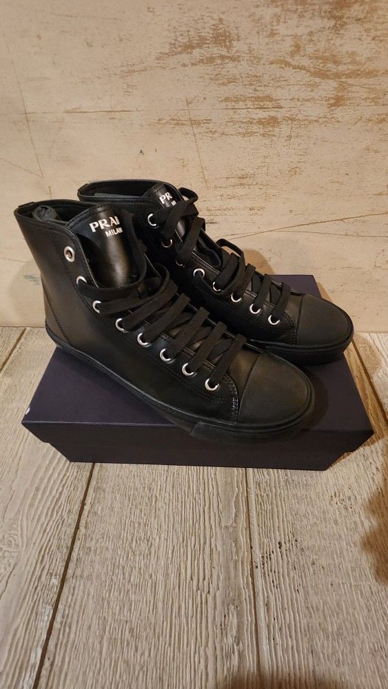 Prada Vitello Plume Mens Shoe Leather High Top With Box
