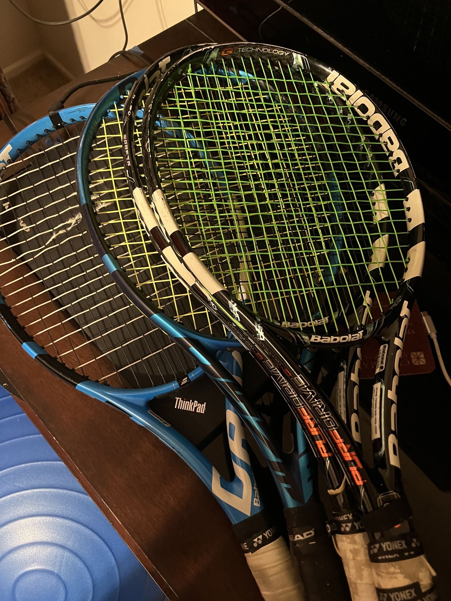 Babolat Pure Drive 2024 (not the current version it was last year’s version) one sold. Grip size 3 4 3/8 Babolat Pure Drive circa 2012 Grip Size 2 have 2 All the head guards are worn and will need to be replaced.