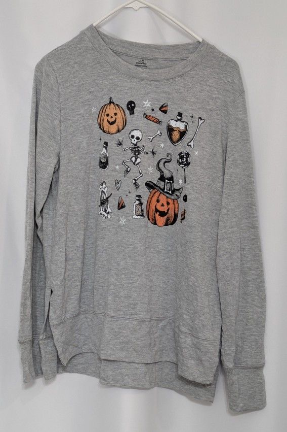 ITEM: Halloween Graphic Top BRAND: Way To Celebrate SIZE: Small (4/6) CONDITION: Excellent pre-owned condition. Clean and soft. DETAILS: Festive grey long sleeve top featuring a spooky Halloween print. Graphic: Jack-o'-lanterns, skeletons, witch hats, and candy. Fabric: Super soft and stretchy knit (Recycled Poly/Rayon). Style: Lightweight sweatshirt / Pullover. Color: Heather Grey with orange/black print. PRICING: $8.00 π PICKUP: Located in (Fresno). Message me to pick up! Item #: WT331
