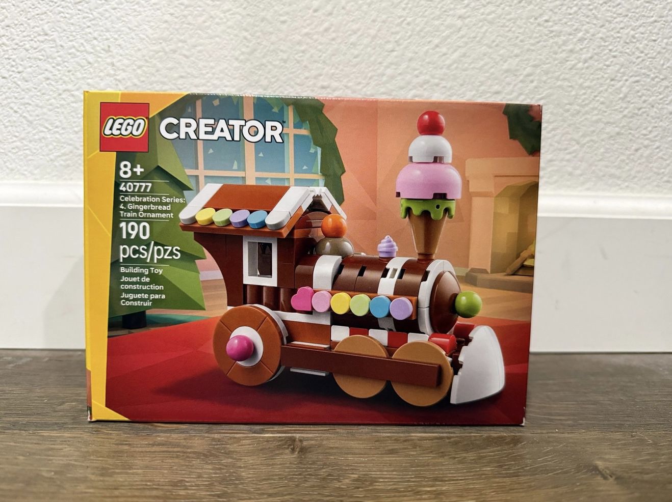 Its the celebration of the Lego creator series for the gingerbread train ornament Lego set and it's never been used or opened.