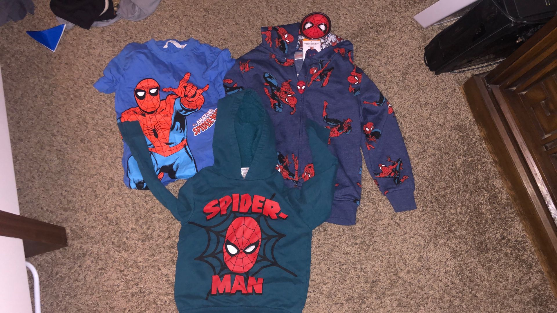 One is brand new with tags and is a little bigger but both hoodies show 7t. The shirt says 6-8. All in very good condition. 20 for all, firm. 13th ave and Thunderbird. Toddler Spiderman clothes