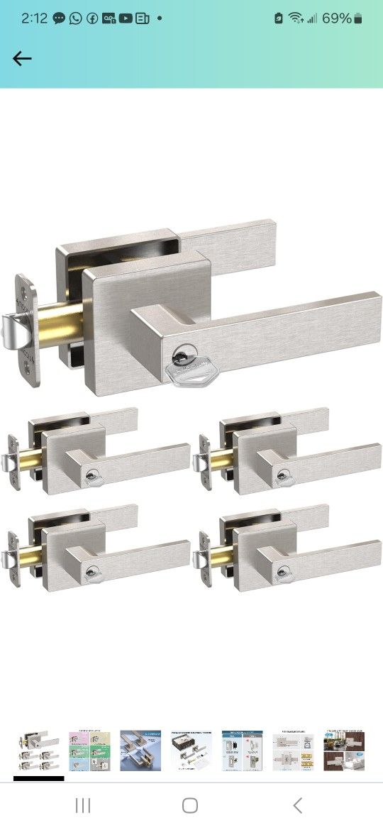 TICONN Door Handle Heavy Duty, Reversible Square Door Lever for Bedroom, Bathroom and Rooms (5 Pack, Keyed Entry - Keyed Alike, Satin Nickel)
