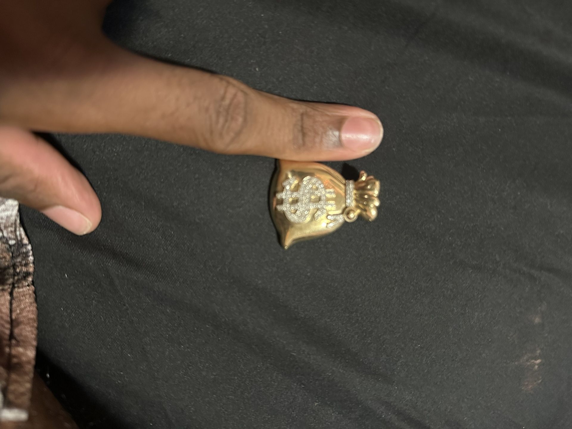 10K Yellow Gold Diamond Dollar Money Bag Pendant 1/2 Ct 1.4"