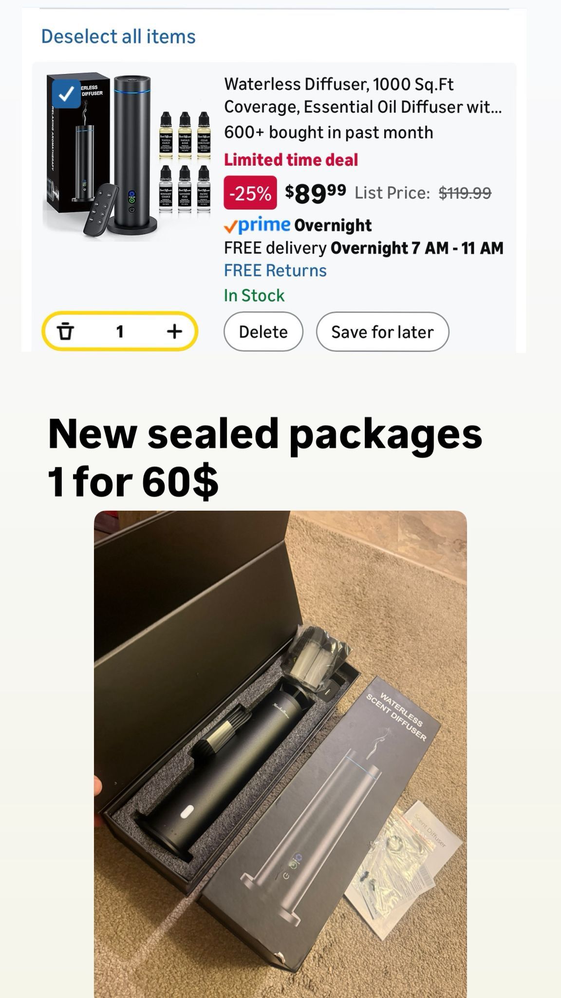 Waterless Diffuser, 1000 Sq.Ft Coverage, Essential Oil Diffuser with Tilt-Safe, Remote Control, Adjustable Mist Mode, Mood Lights Aromatherapy Diffuser for Home, Large Room, Office, Hotel, Black New sealed packages Bigger one 60$ each Smaller size 25$ Pick up Belmont and broadway Chicago Check out others on my account