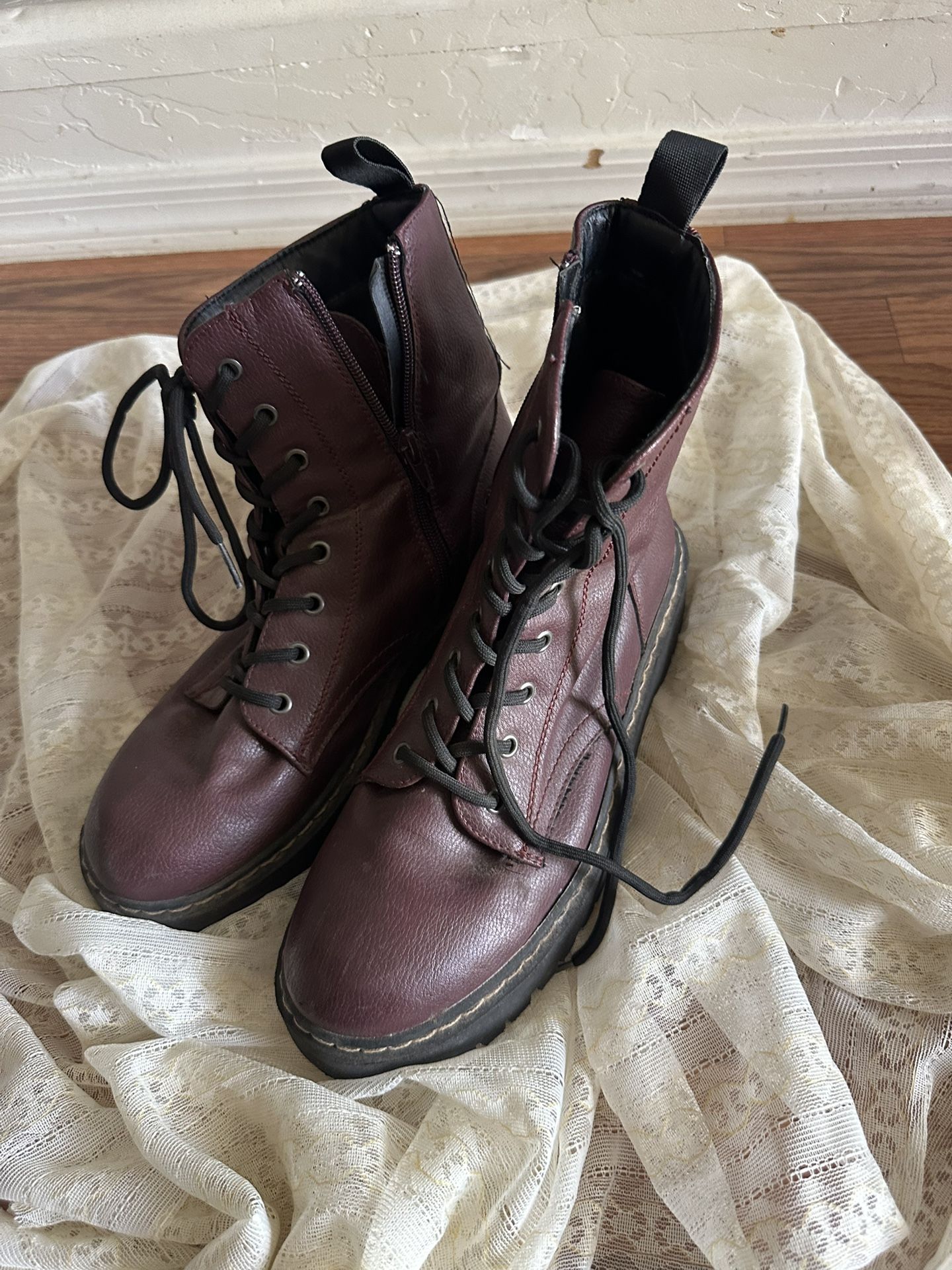 Sincerely Jules Harley Maroon Patent Leather Combat Lace Up Zip