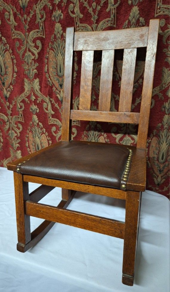 Authentic Antique Mission Oak Stickley Rocking Chair.