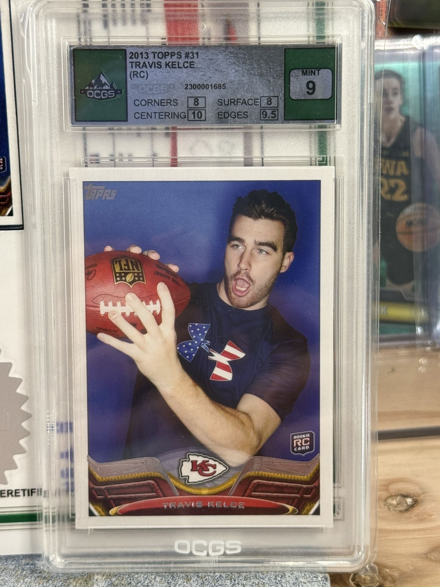 2913 Topps Travis Kelce graded 9 mint with certificate of grade by OCGS equal to a PSA 9 get Taylor swift boyfriend while he is still cheap before he breaks the records and wins another Super Bowl