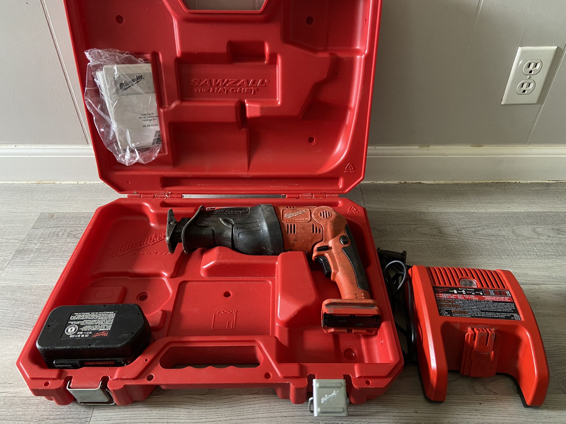 Sawzall is in good condition and does work. Battery and charger works. Case is in good condition. Please let me know if you have any questions. First come first serve no holds.