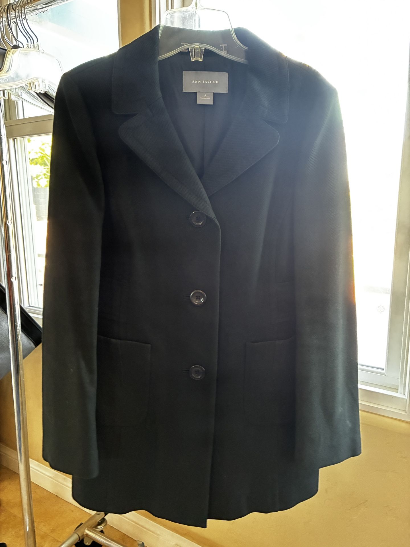 ANN TAYLOR Modern Black Wool Blend Peacoat Size Small
