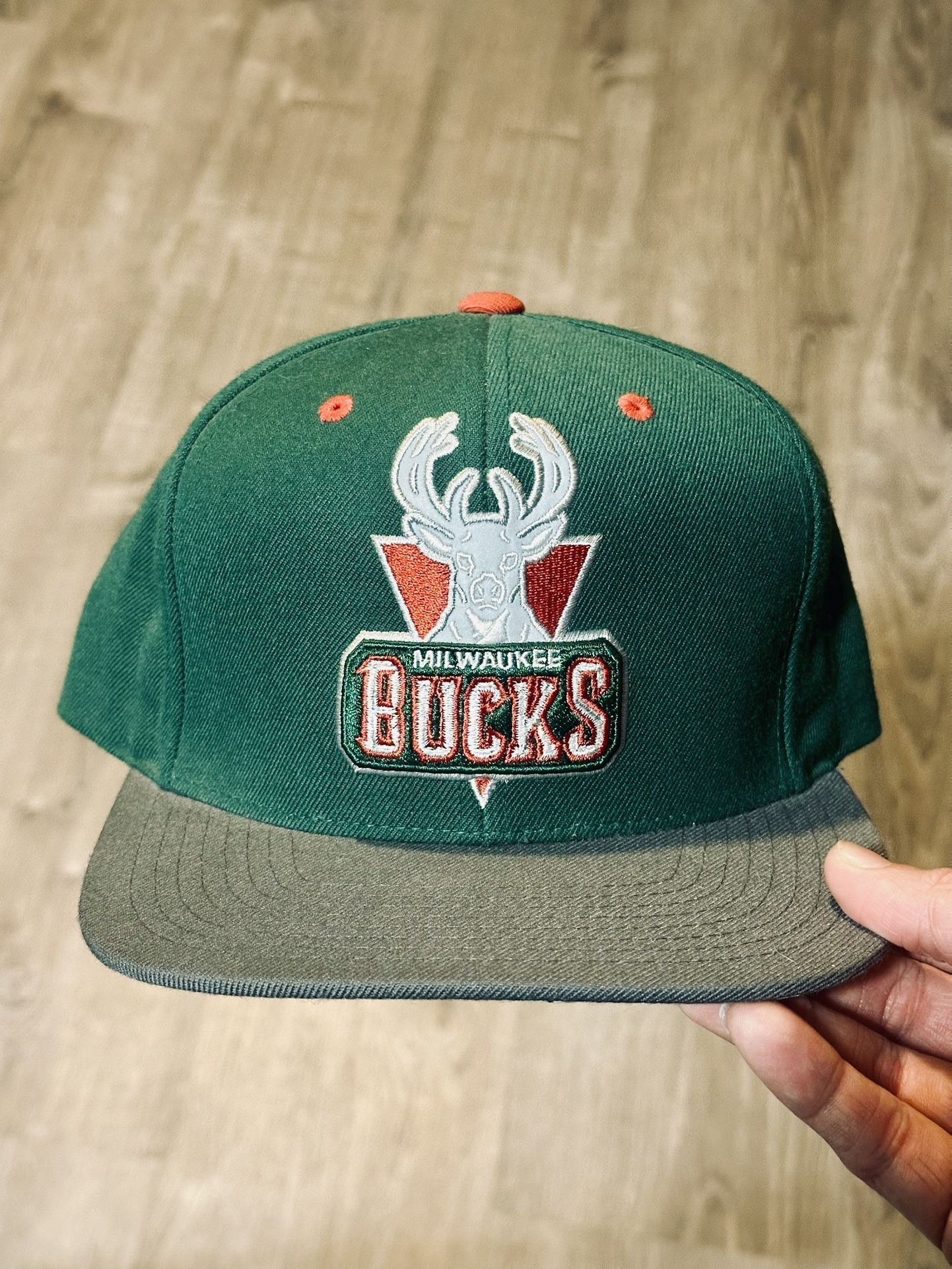Official Mitchell & Ness Milwaukee Bucks Vintage Style Snapback Hat |Embroidered Logo