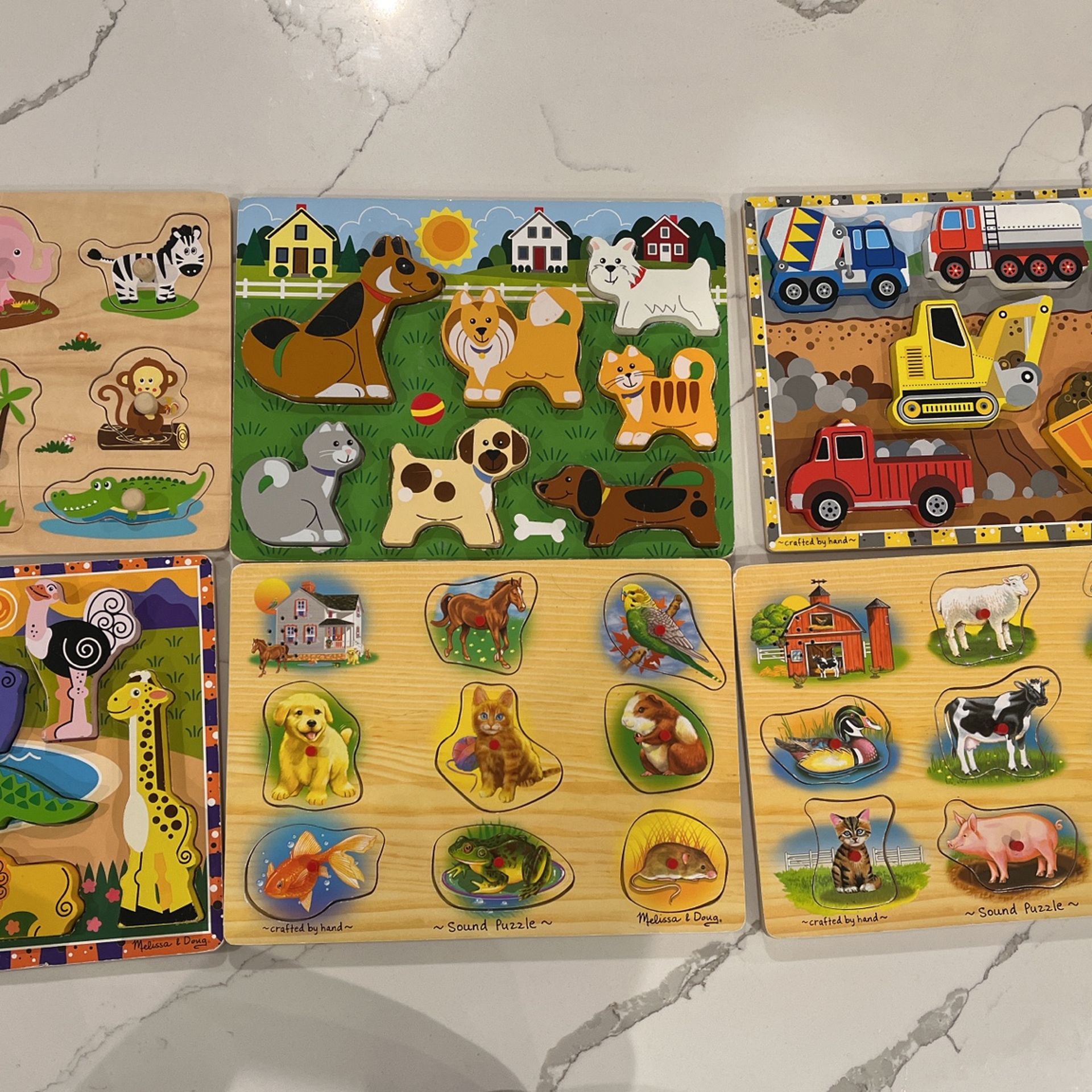 Our youngest is to old for them and now we’re looking to sell the puzzles there great for learning about different vehicles and animals.