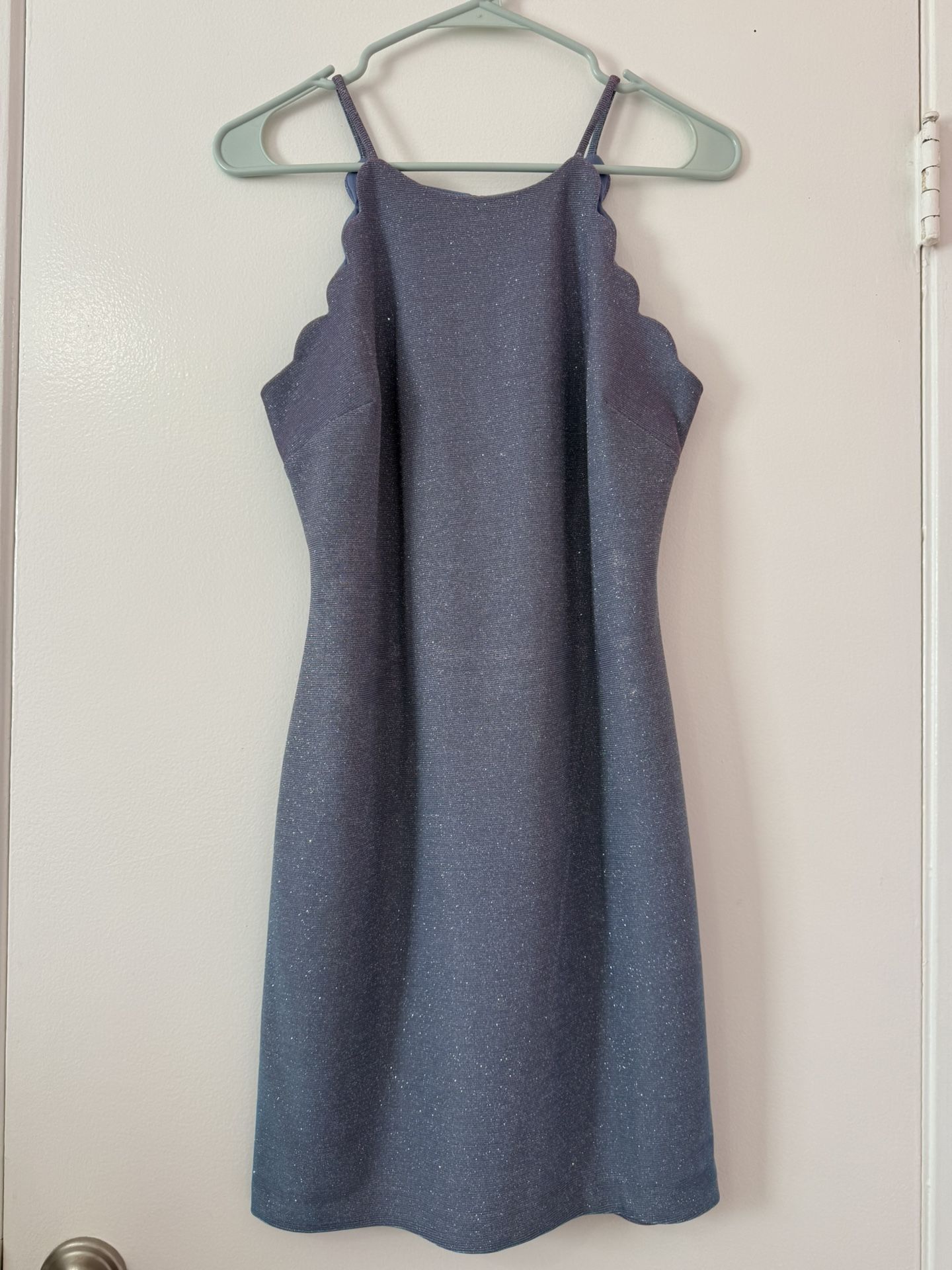 Beautiful sparkly, bluish, purple dress in size 1 with zipper closing in the back in perfect condition