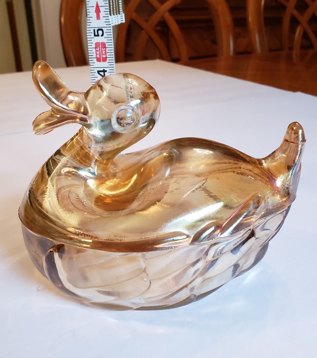 Vintage Carnival Glass Duck Candy Dish π¬ . Cross posted.