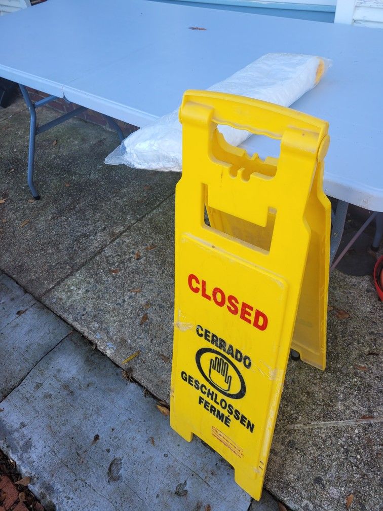 You will be getting 2 new Dust Mops and used Tall Yellow wet floor sign