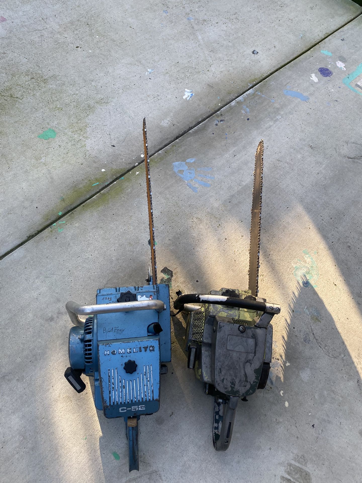 Two chains for sale one is a Homelite and the other one is a pioneer. They were running with starting fluid or with carburetor cleaner. They both need carburetor work otherwise they start on they cut. $50 each or $80 for both.