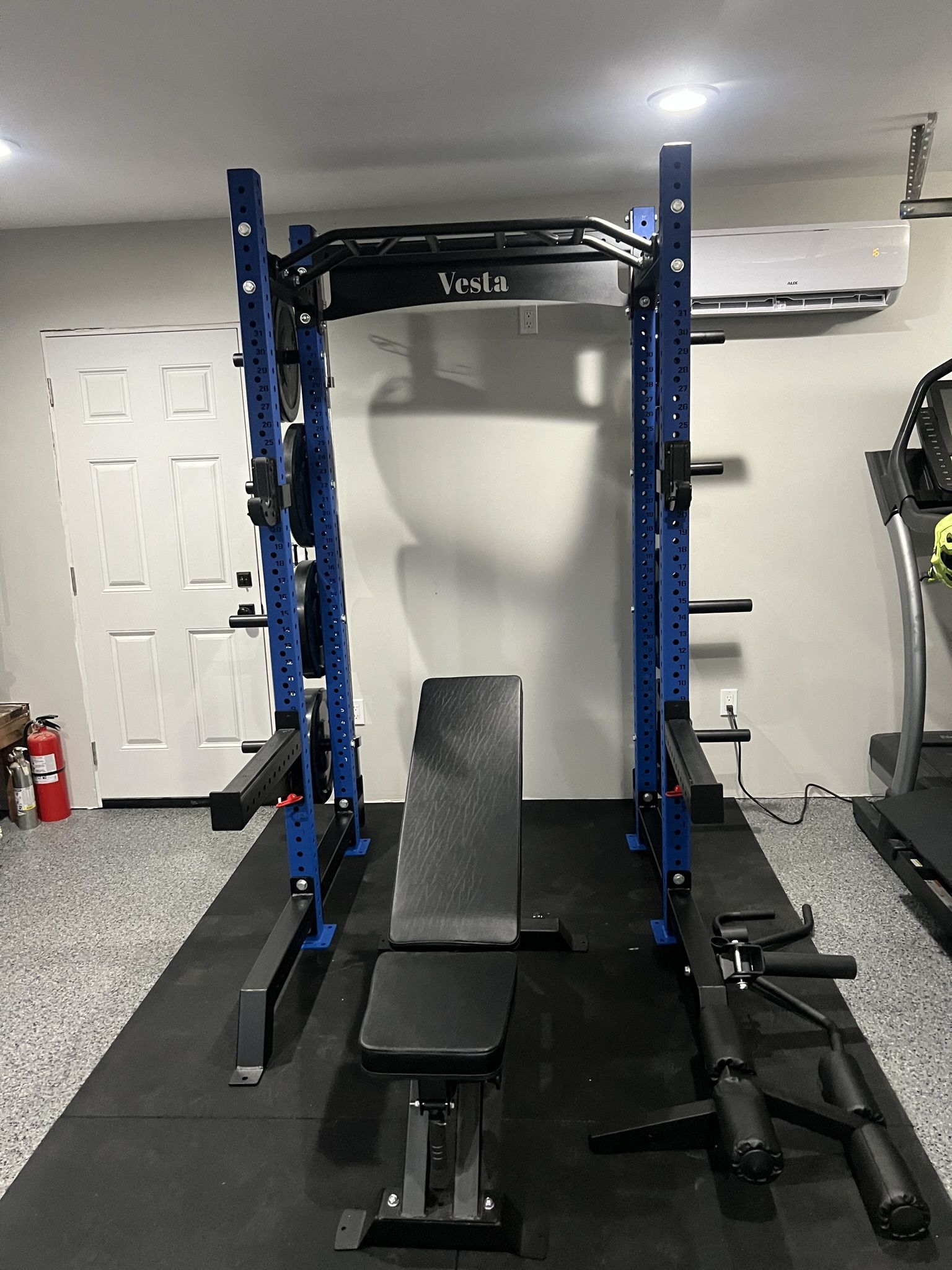 BRAND NEW IN BOXES FREE DELIVERY INCLUDES: J CUPS SAFETY ARMS MULTI GRIP PULL UP BAR BARBELL HOLDER WEIGHT HOLDERS HEAVY DUTY ADJUSTABLE BENCH BARBELL AND WEIGHTS INCLUDED DIMENSIONS 55”Lx73”Wx90”H Optional: Plate holder $35/pair Landmine $55 Dip bar $100 3x3 inch 11 gauge 5/8" holes. Color: Red Blue Also carry dumbbells kettle bells ez curl bar smith machines with pulley system, floor mats, woman’s barbell, and more!
