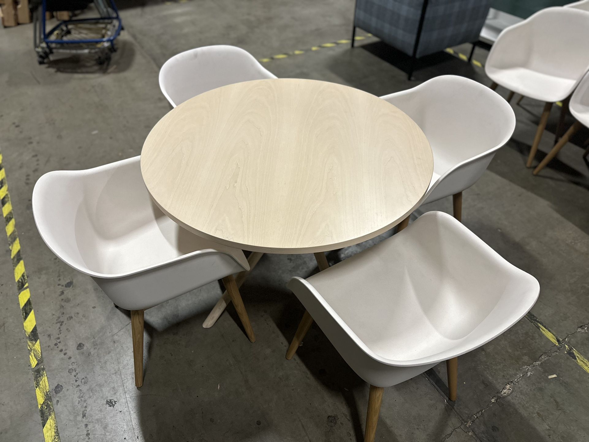 4 chairs and 1 each table 39” diameter, high end and made in europe
