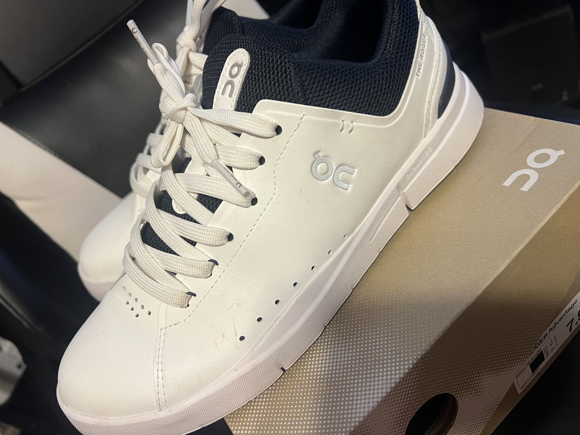 White/Midnight On Cloud The Roger Advantage Men’s 7.5 or Women’s 9 shoe. Rarely worn, slight dirt that can be cleaned. Original Shoebox