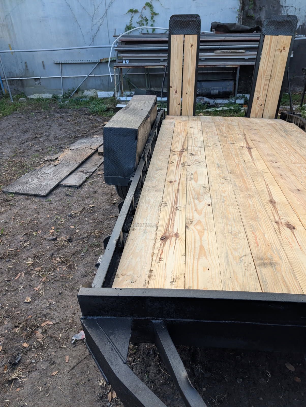 Heavy duty solid pintle hitch trailer. Overall dimensions 19l x 8.5w Deck dimensions 14l x6.1w New tires all around, new deck. Lights work. Bill of sale