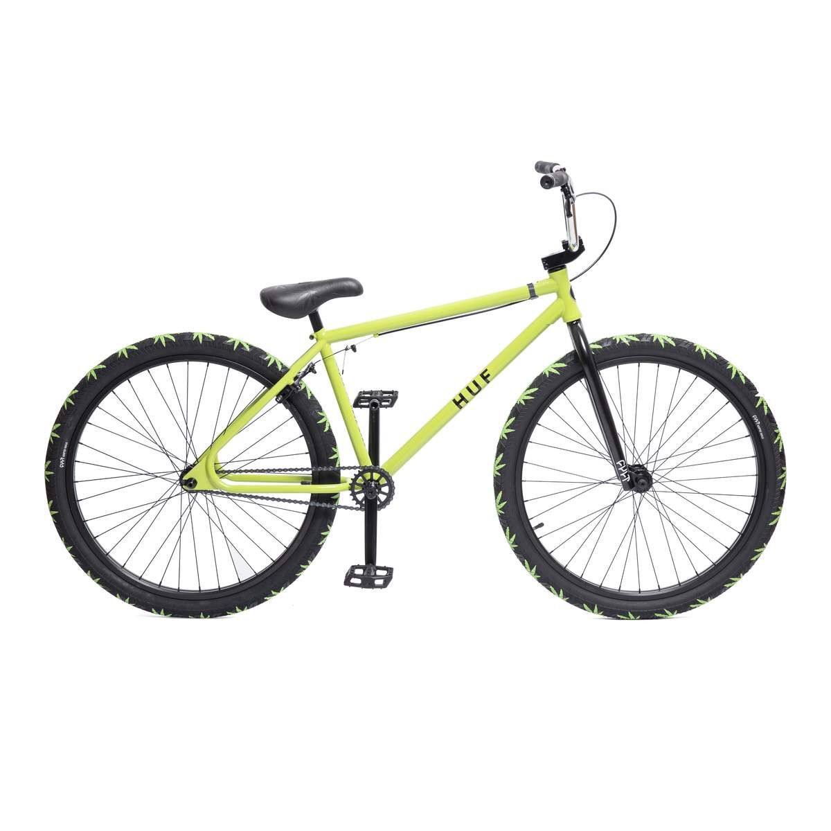 Brand new still in box! HUF X CULT 26-INCH CRUISER BIKE special edition super rare limited run. As seen on HYPEBEAST. Released the same week Keith Hufnagel passed away. This bike will go up in value and I wish I got a chance to ride it but it never left the box. 22' TT •Custom HUF-green frame with CULT x HUF-branded stickers •Vintage-style loop tail rear end •CULT x HUF grips •HUF 'Classic H' logo embossed chrome headtube badge •CULT x HUF-branded top load stem •Integrated headset •CULT nylon pedals •Heat-treated CROMO 3-pc 175mm •Sealed mid bottom bracket •CULT 410 chain •Sealed front female hub •Sealed 10T cassette hub •CULT match rims •25T alloy member sprocket •Custom HUF Plantlife leaves debossed pivotal seat •Custom CULT X HUF printed Plantlife leaves 26 x 2.10 Tires •990 U-Brake •Clear coat HUF-green frame w/ black parts •30 lbs. •Limited-edition HUF x CULT Collaboration