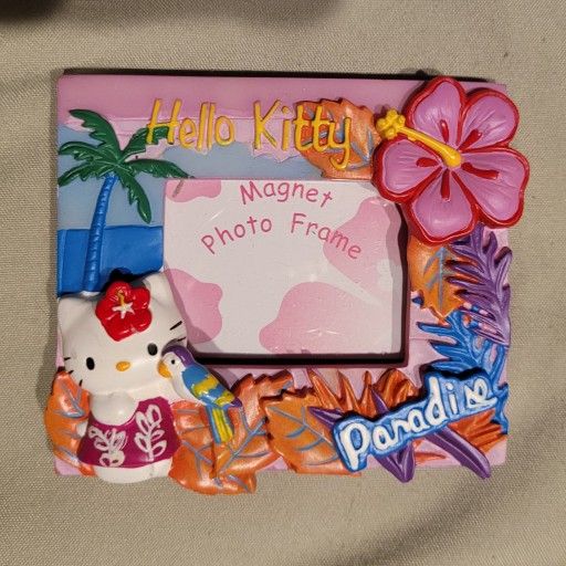 Brand new AUTHENTIC vintage hello kitty MINI picture frame from 2004. Its made of clay/porcelain. Has a magnet in the back can be put on your refrigerator or locker or anything metal. Perfect for birthday or christmas gift, stocking stuffer or for collectors. $10 each i have multiple lmk how many you want. Price firm pickup in waipio NO DROPOFFS! Please feel free to checkout my other listings on my page also thank you