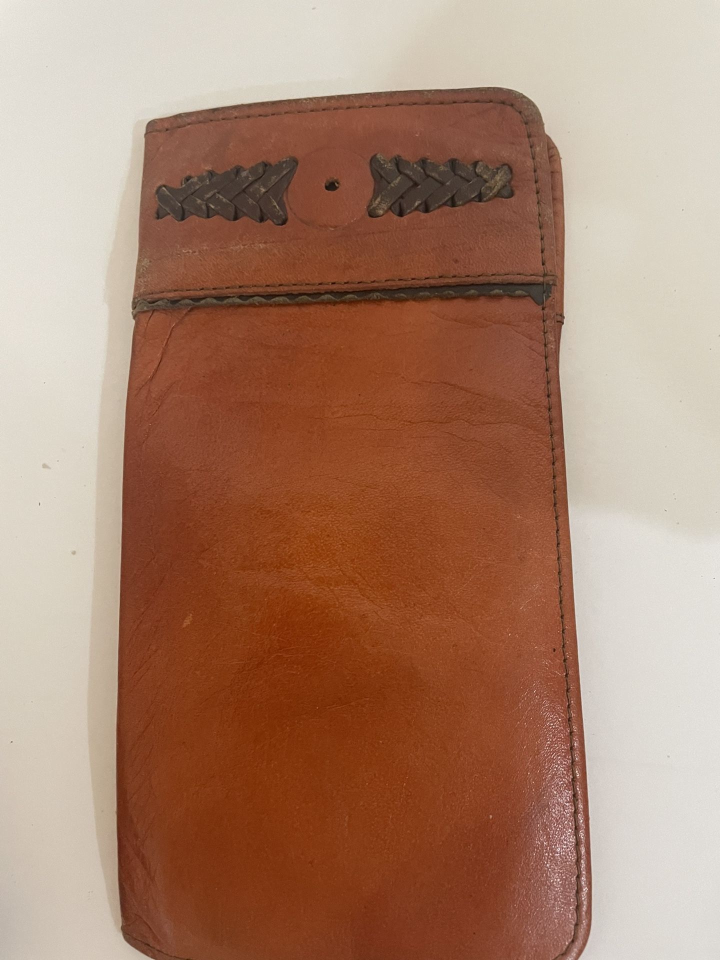 Aged Western Leather Braid Checkbook Wallet