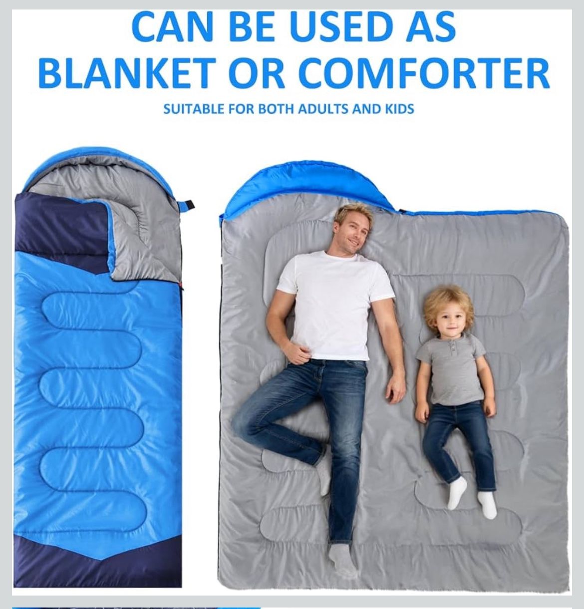 Camping Sleeping Bag - 3 Season Warm & Cool Weather - Summer Spring Fall Lightweight Waterproof for Adults Kids - Camping Gear Equipment, Trave