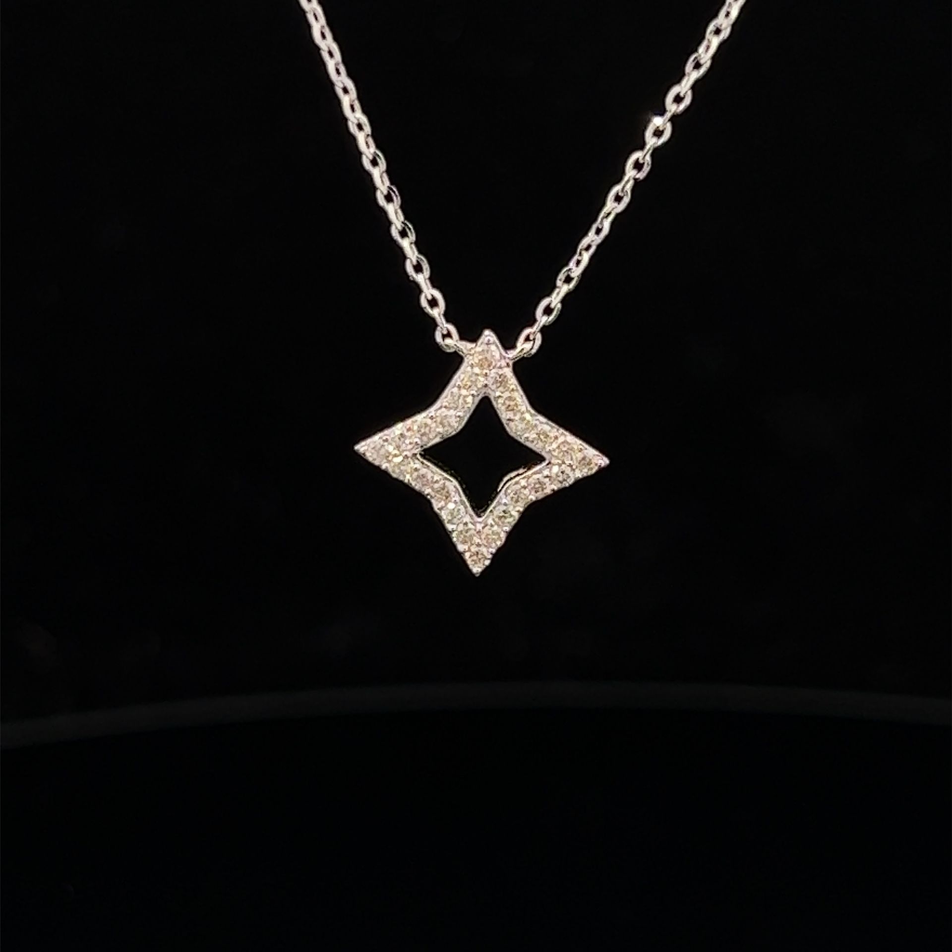 We have for sale a 14k white gold diamond star pendant. It weighs 0.14ct, H in color, SI in clarity. It comes with chain/necklace shown in picture and can be resized after purchase. You can purchase this piece in our store, Luo M Jewelers, or message us on here.