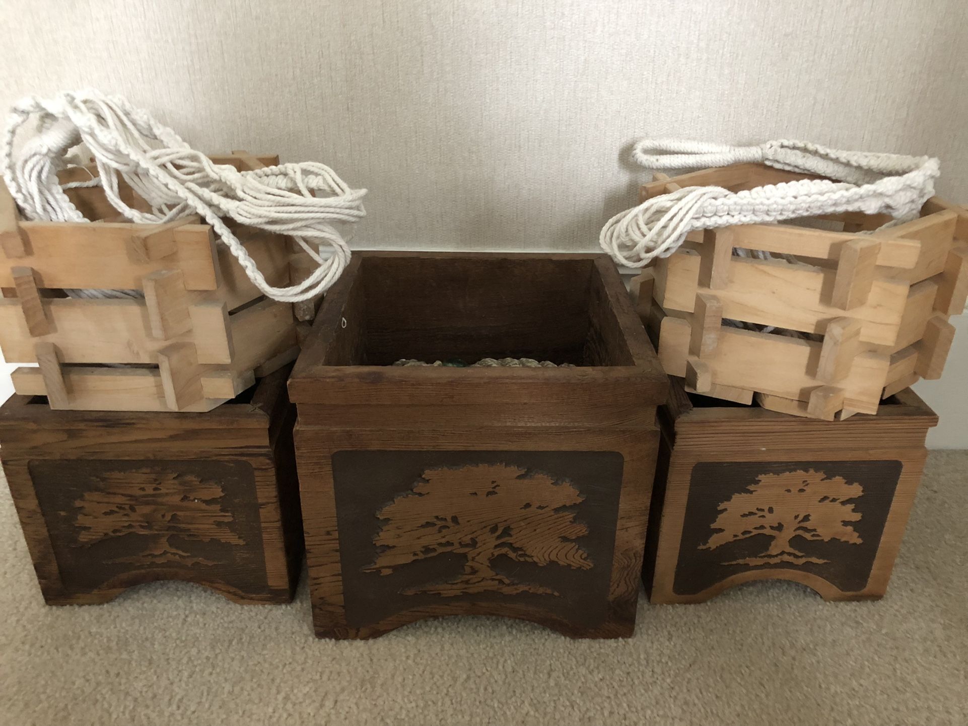4 six inch planters 1 eight planter 2 forty-two inch hangers