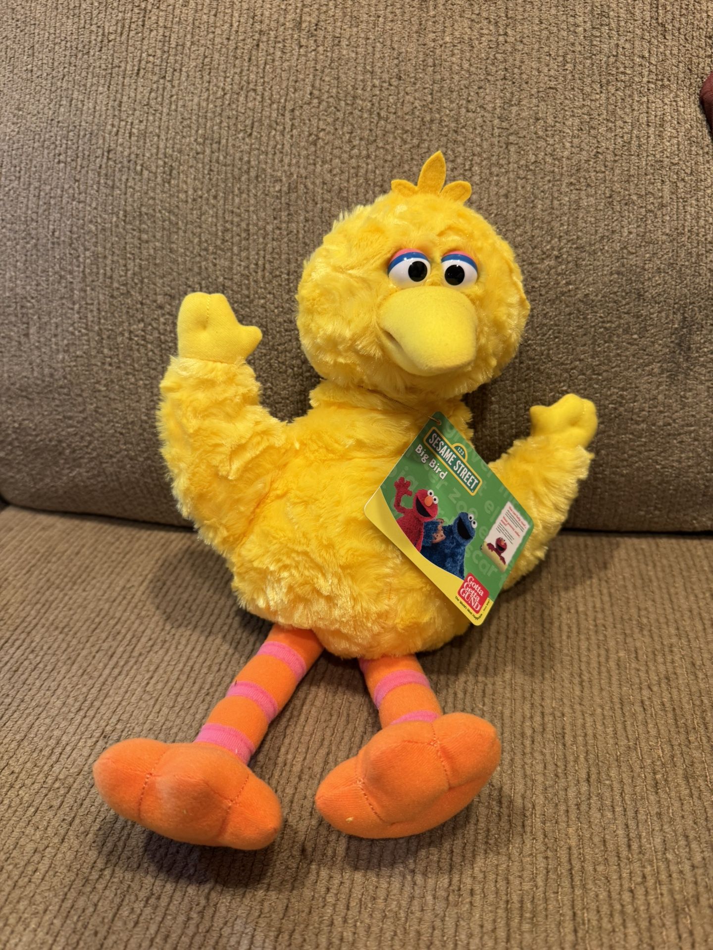 Sesame Street Big Bird Plush Stuffed Animal GUND 075350 14.5" Vintage 2008 See photos for complete details and description Material: Soft polyester with embroidered features. Features: Bright yellow fur, long orange and pink striped legs, and floppy limbs. Brand new with tags Pick up in Homer Glen