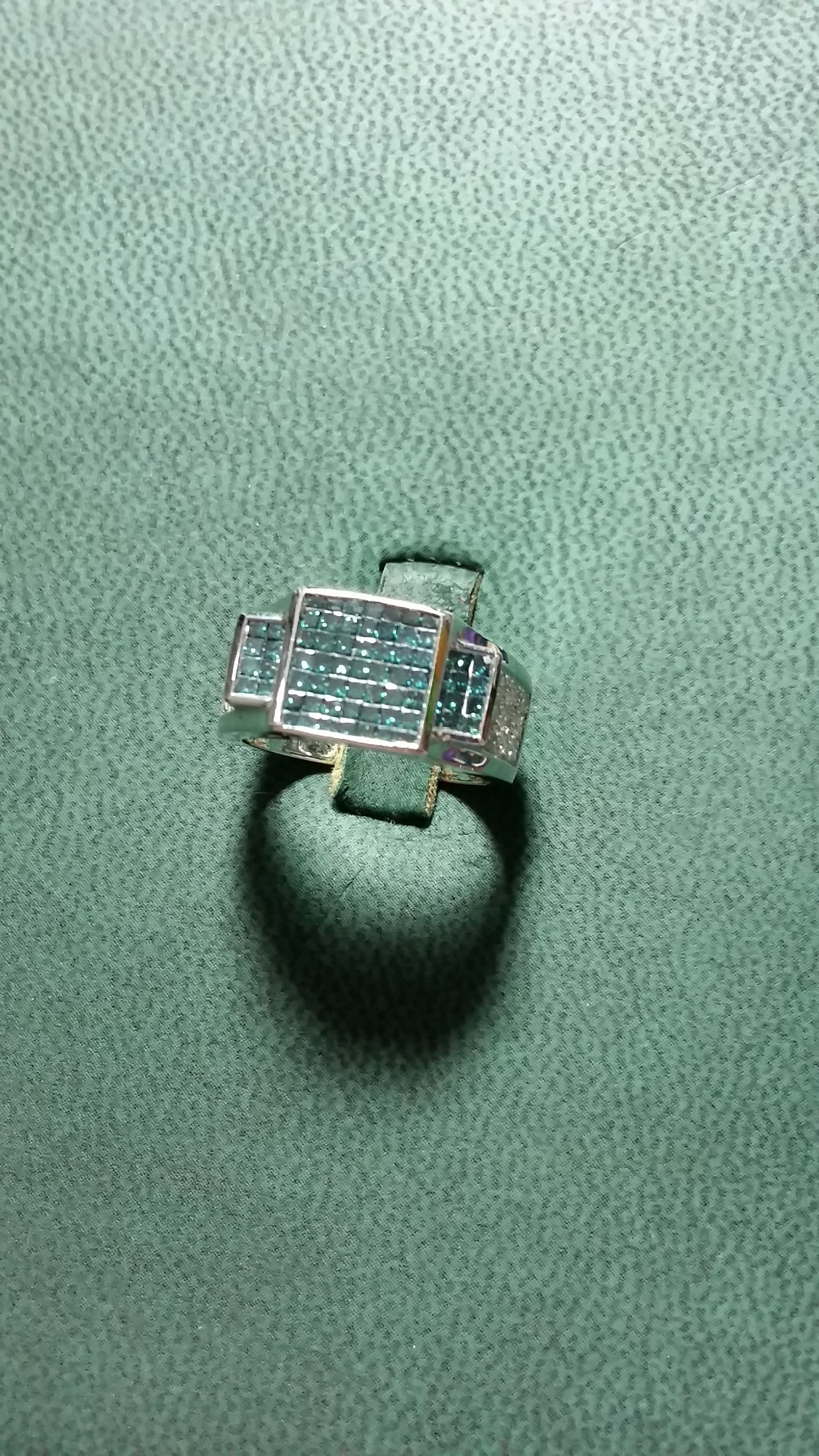 2ctw Princess cut Blue Diamond & White Diamond accents in 14kt White Gold. This is a Unisex Ring. Retails for $5000.00 Asking $2000.00 Firm