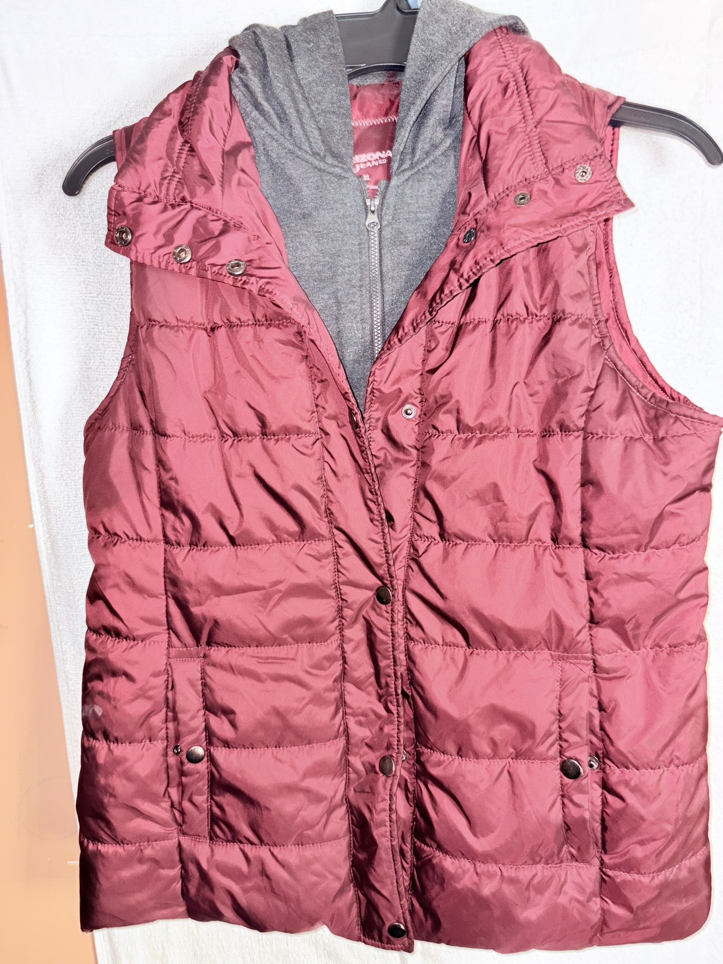 Women chaleco color tinto medida XL usado en buen estado Trae gorro