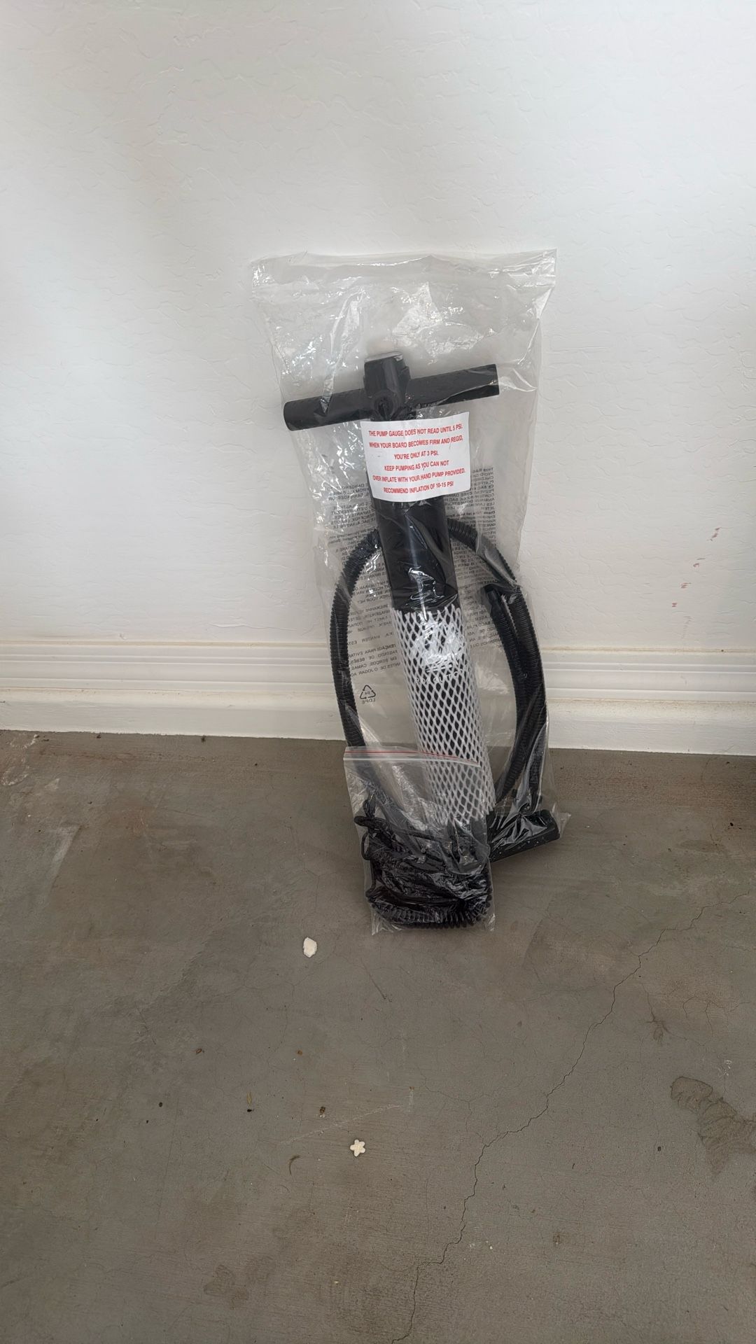Never opened. Manual paddle board pump. I also have a foot strap that I will not use!