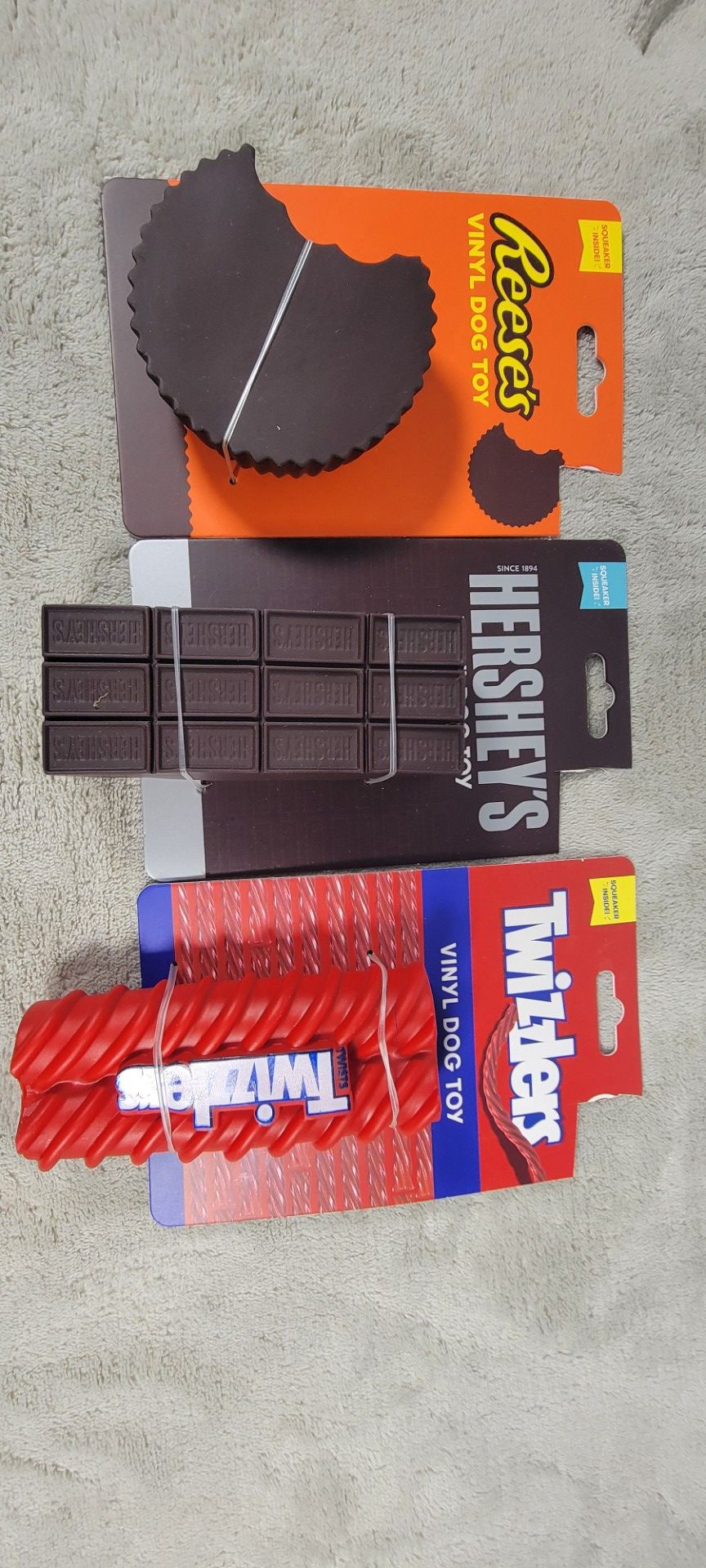 NEW Dog Toy Bundle – Reese’s, Hershey’s & Twizzlers – 3 Toys Selling a set of 3 fun dog toys: Reese's toy Hershey's toy Twizzlers toy Great for play a