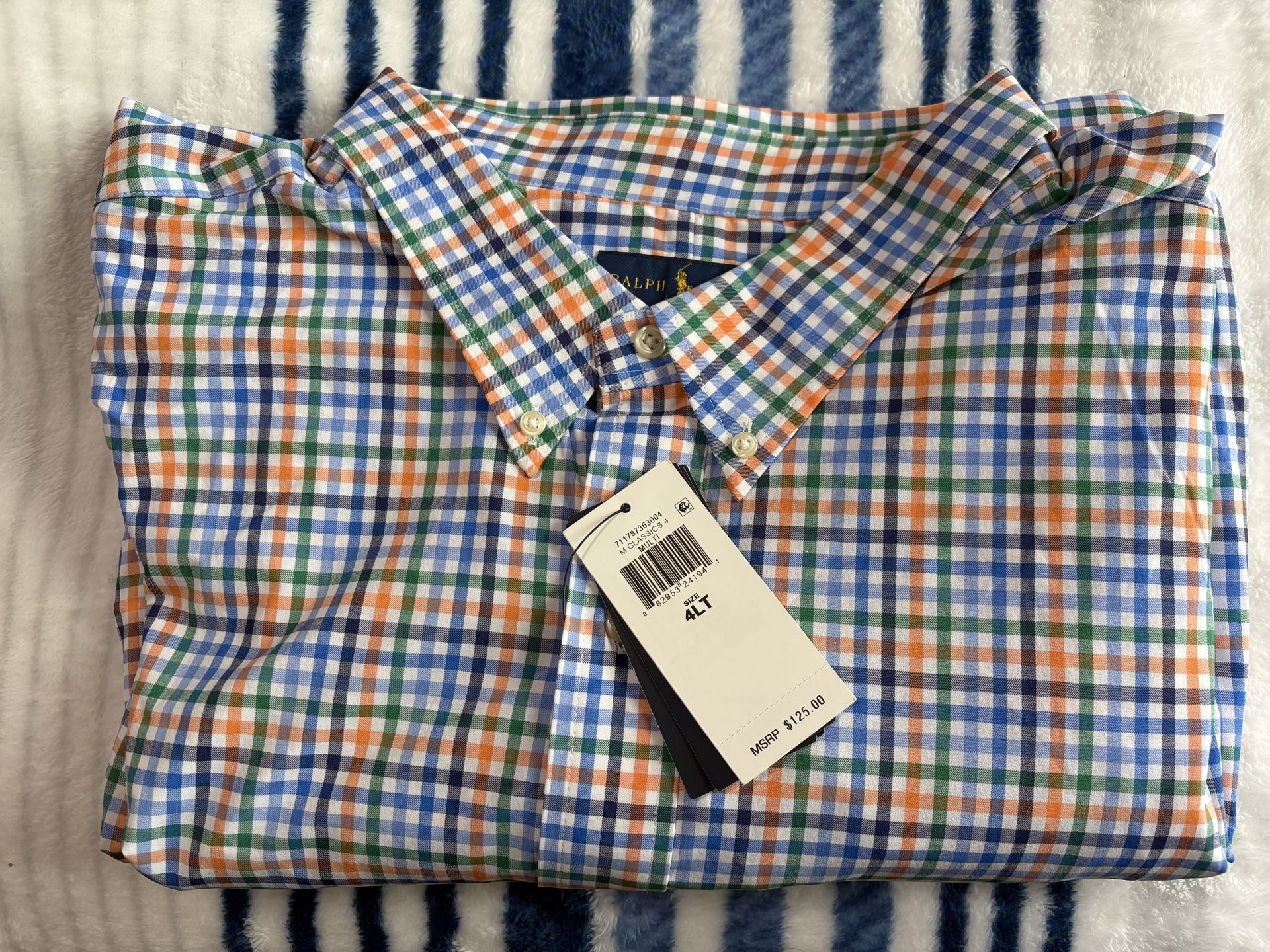 NWT Men’s Polo Ralph Lauren performance multi colored checkered button down 4XLT