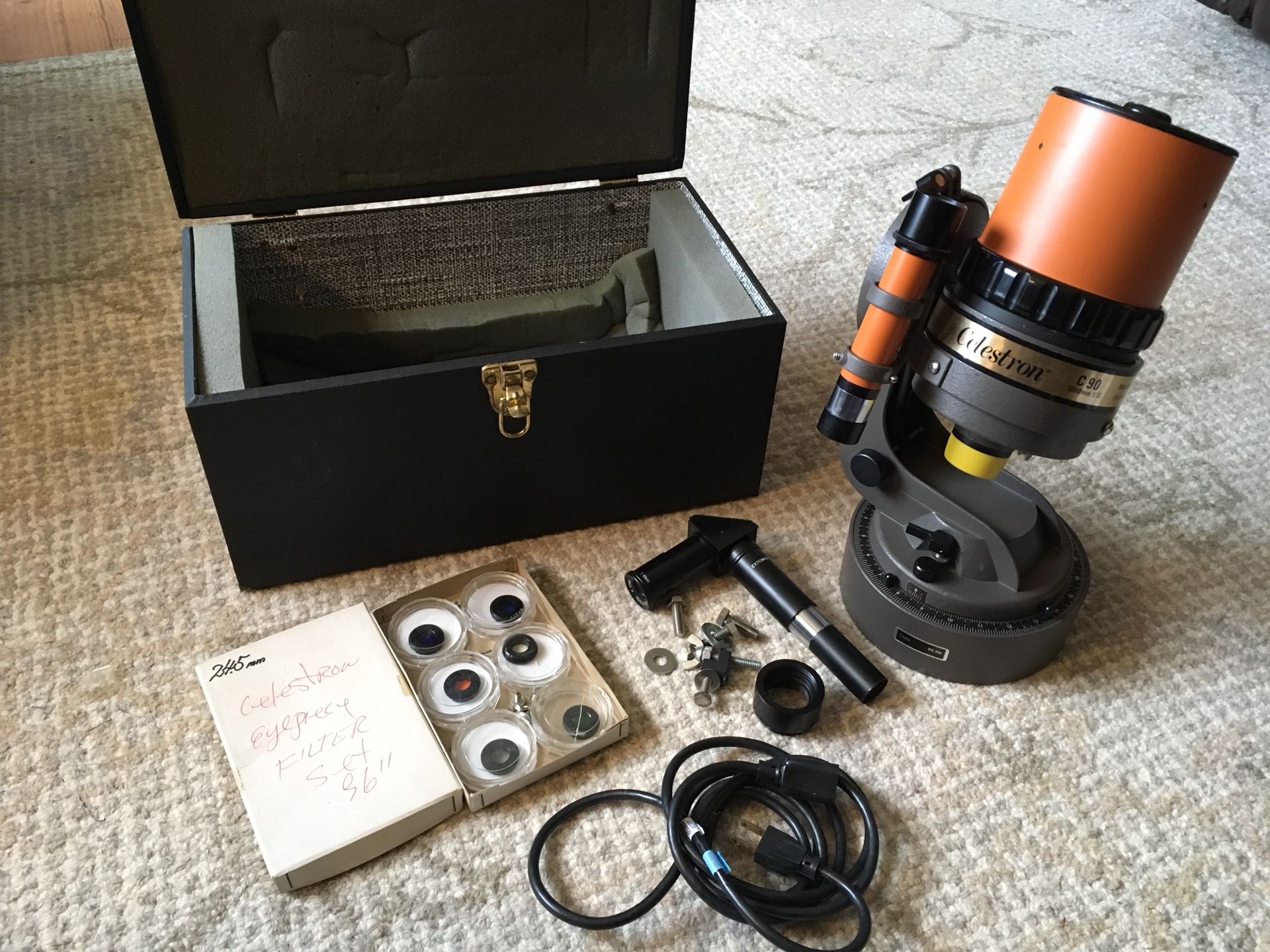 Celestron C90 1000mm F/11 Maksutov Telescope and Tripod With case and everything in the pictures Excellent condition $195 Reasonable offers considered