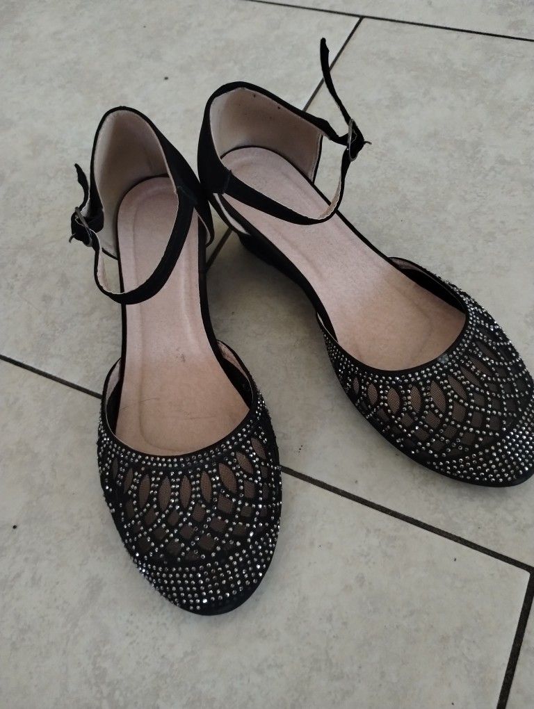 Size 8 and 1/2 in women dress shoes with crystals on top and straps on ankles for 6$