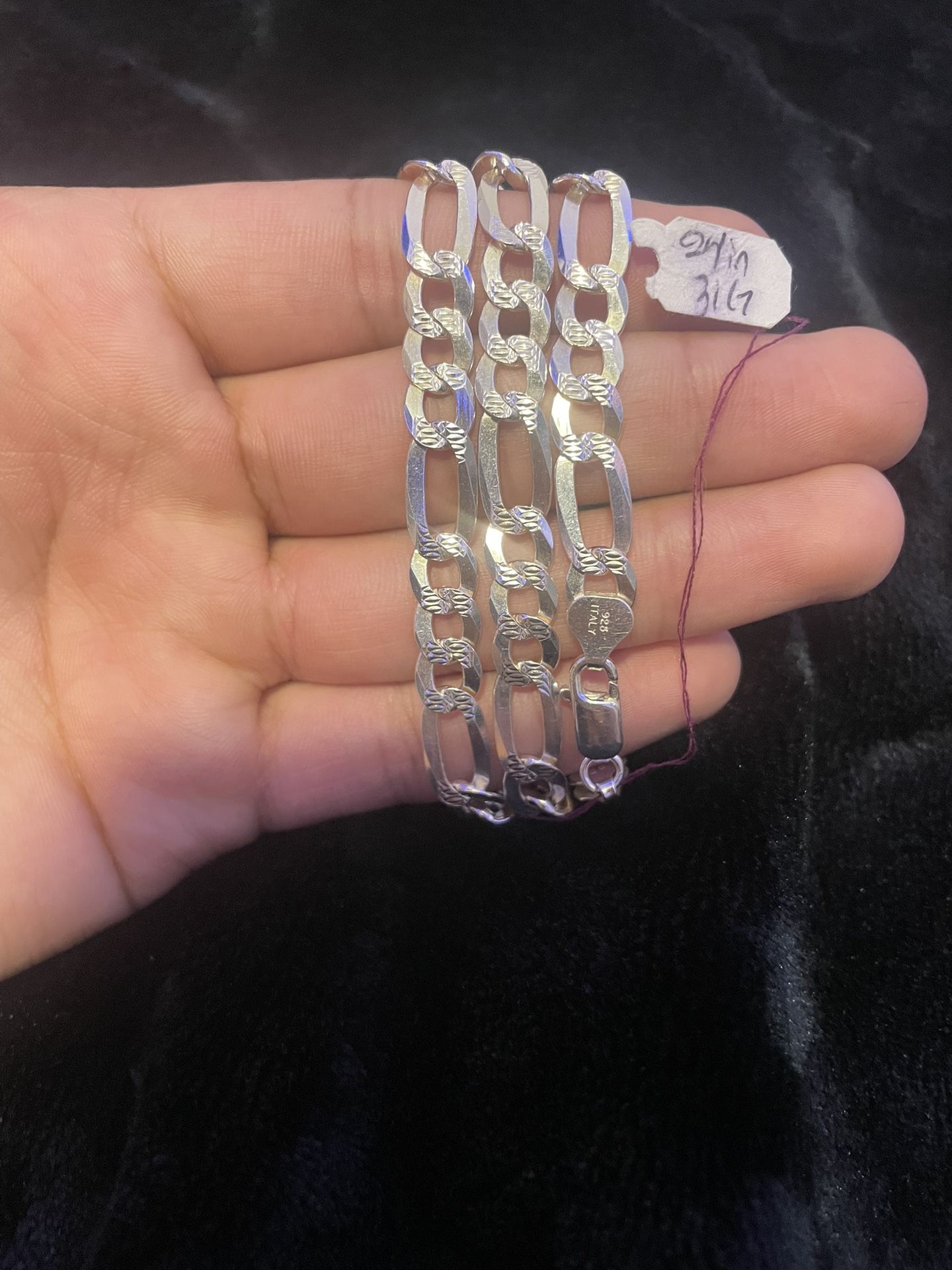 925 Silver Figaro chain with diamond cut 24 inches