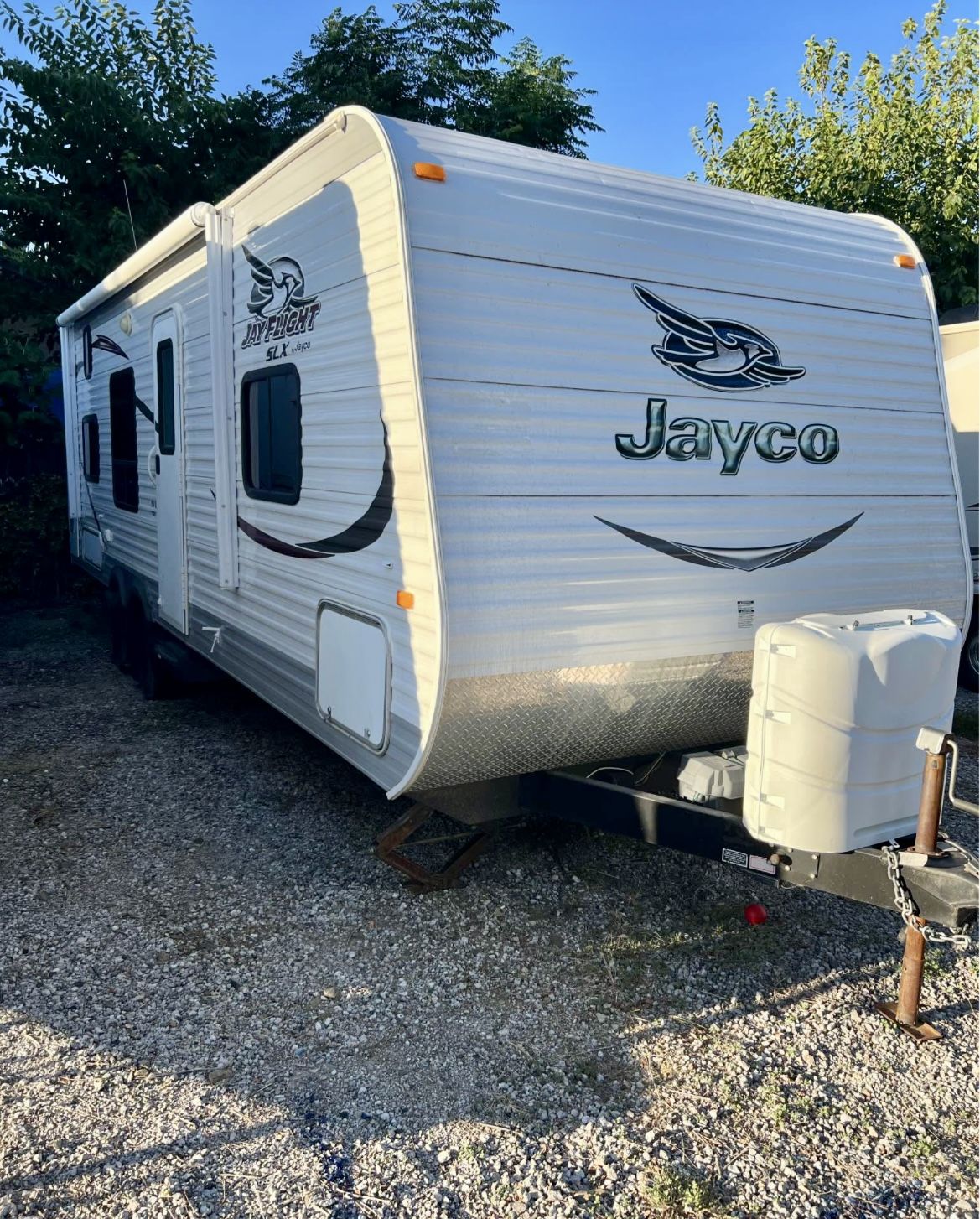 Jayco Jayflight 2015 264BHW AC is very cold, heater works excellent Dual large propane tanks New battery New tires Electric awning Tv’s included Bunk beds Sleeps 8-10 29’ long 48 gallon fresh water tank 39 gallon grey water tank Dinette and sofa converter into beds Interior and exterior good condition Everything works can test for you !