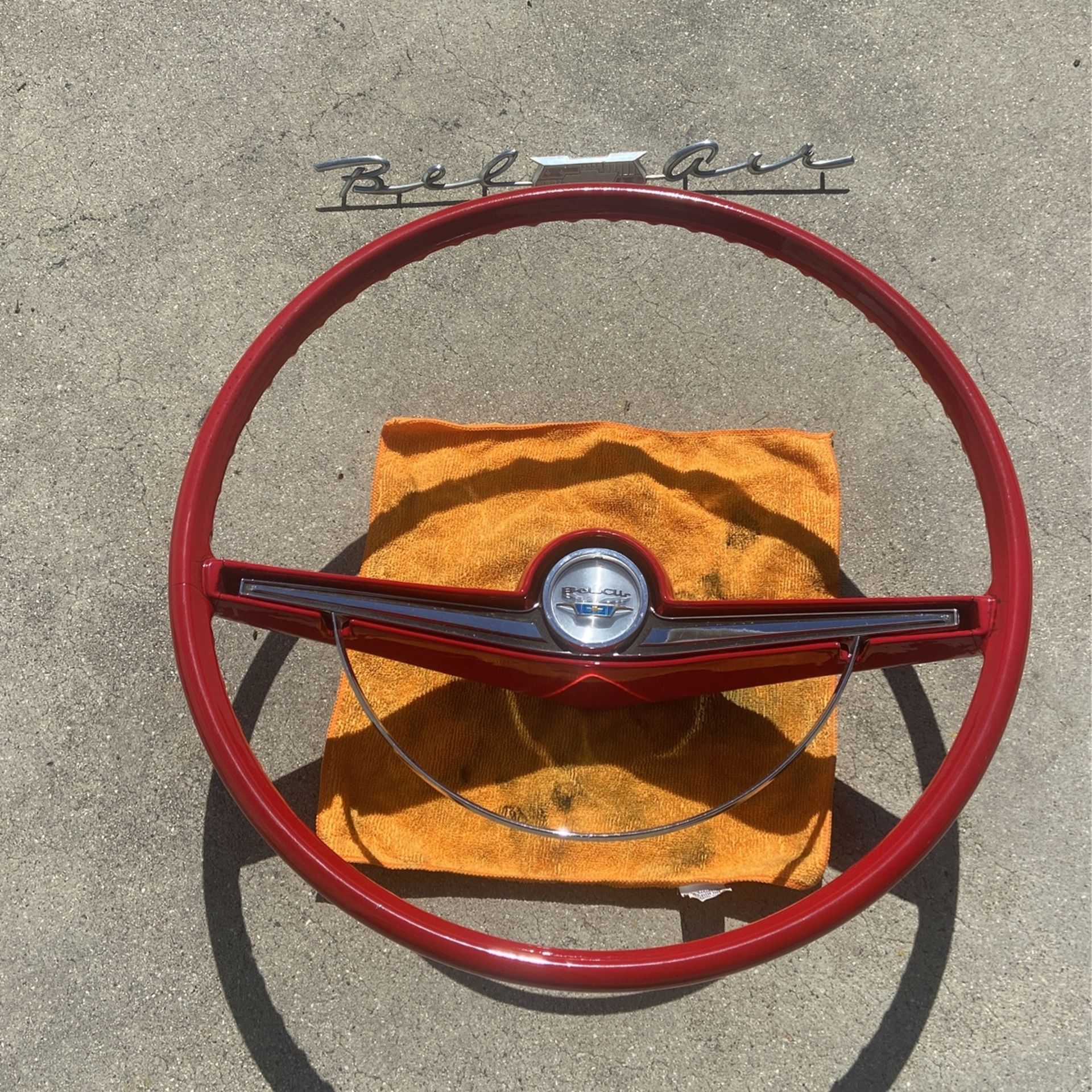 Selling a belair steering wheel it’s in good shape was repainted by a friend 200 takes it and the emblem