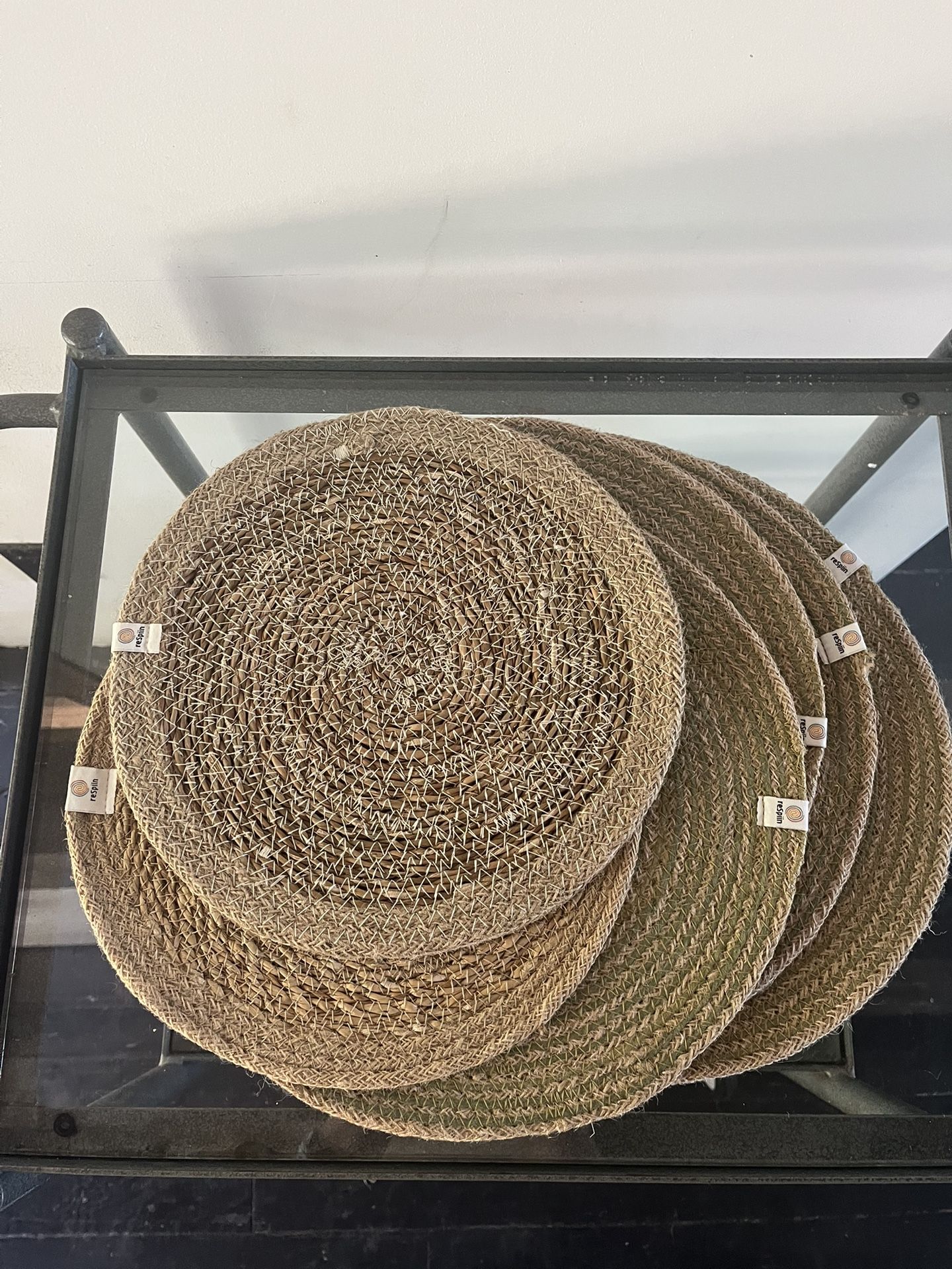 4x large 12 3/4” round freetrade, sisal woven place mats 2x medium 11” round freetrade sisal woven place mats Never used. Bought from a craft market