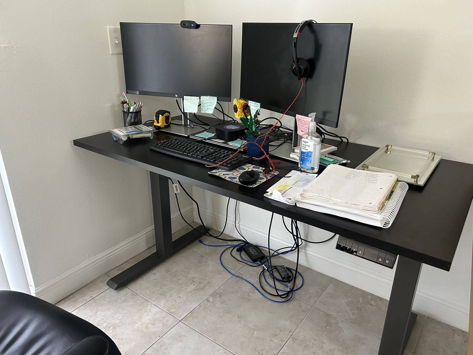 Electric adjustable standing desk in excellent working condition. Perfect for home office, remote work, or study space. ✔️ Smooth electric height adjustment ✔️ Modern black finish ✔️ Sturdy and stable frame ✔️ Spacious surface for dual monitors or laptop setup ✔️ Quiet motor ✔️ Clean and well-maintained ✔️ Integrated Electrical outlet This desk easily switches from sitting to standing with the push of a button, helping with comfort and productivity. Selling because it’s no longer needed. Retails for $429 new 60 x 30 Height Maximum 47 in Height Minimum 30 in Desk only (monitors, keyboard, and accessories not included). Pickup only. Serious inquiries welcome.