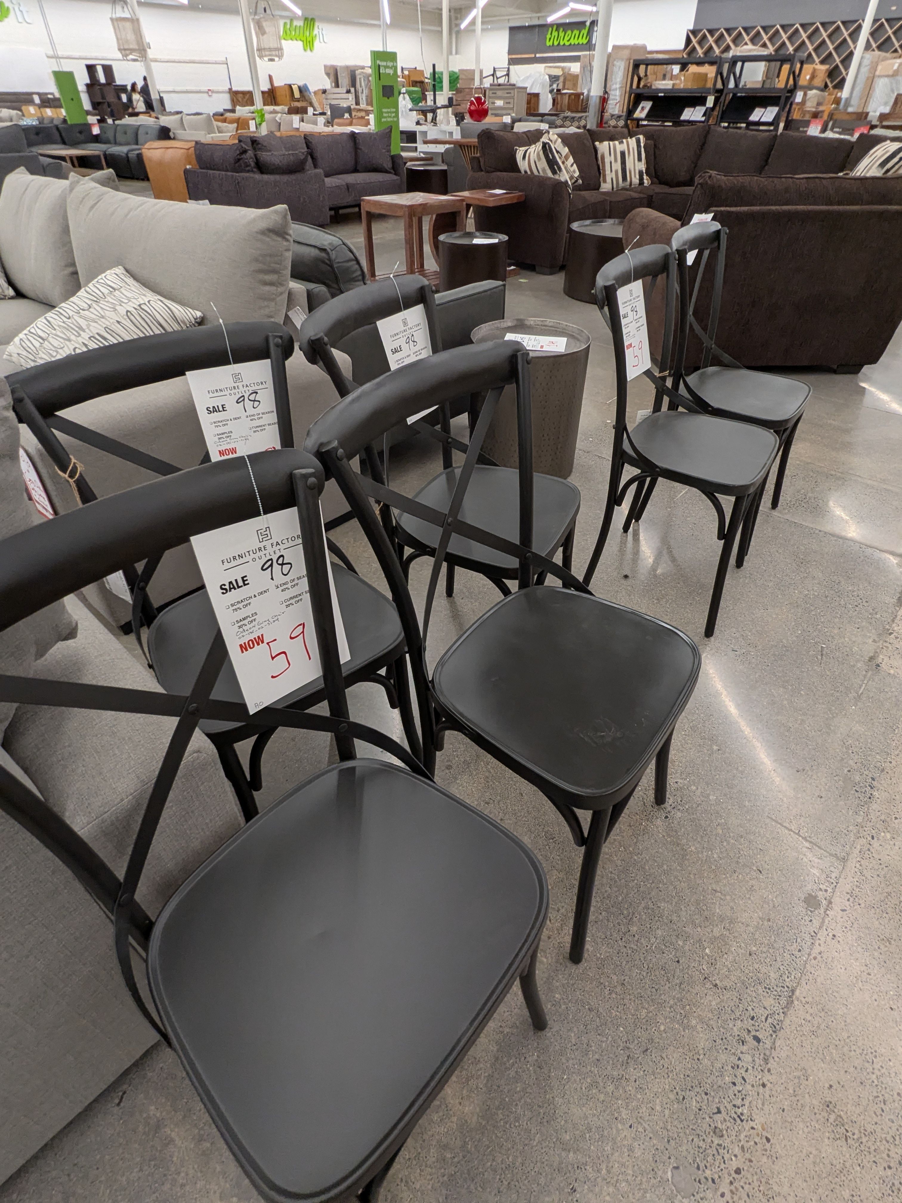 The Odeon cafe chair evokes late nights at outdoor Paris cafes. A dark gray metal dining chair with an elegant X back, it's a classic chair that dresses up any dining table. Item Width (Inches from side to side) 19 Item Depth (Inches from back to front) 19.5 Item Height (inches) 35 Call ahead for a 2 hour hold, Financing is avilable.
