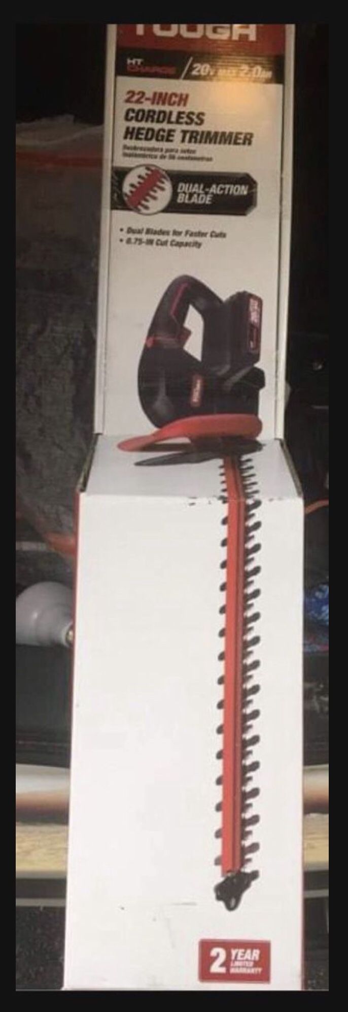 Brand new…sealed box from Walmart. Battery operated 22 inch blade HyperTough hedge trimmer…bought it for my dad but he had one already and could not return