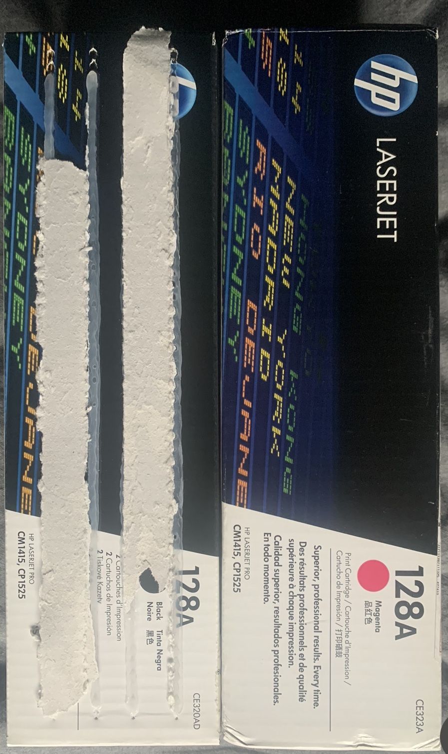 *Brand NEW* in the box HP Laserjet ink cartridges. 128a magenta and 128a black. We got a new printer and these aren’t compatible. As you can see these retail for $75 each. Take both for only $50. That’s $100+ off.