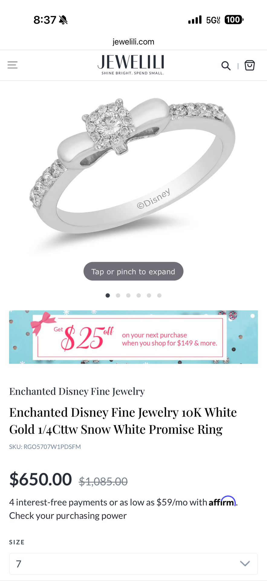 Never worn white gold limited edition Disney Snow White promise ring! Must pick up! No shipping!