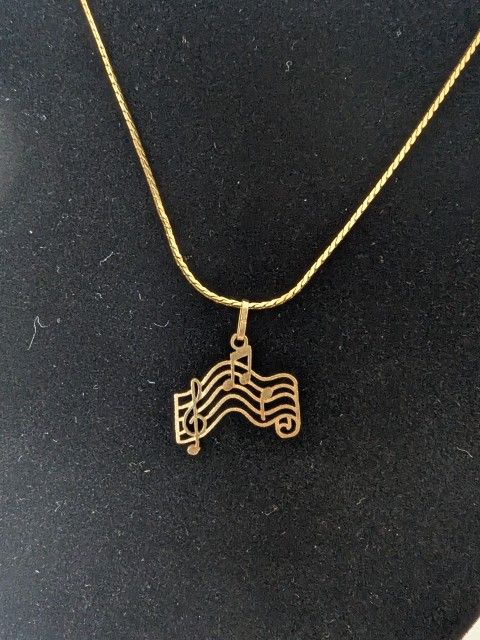 Vintage Trifari Gold Tone Necklace with Music Pendant