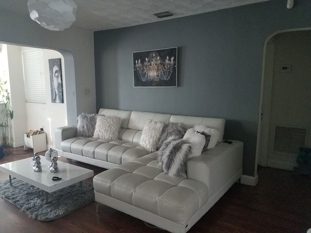 White Leather Modern Sectional. Rooms to go Sofia Vergara Collection. Good condition