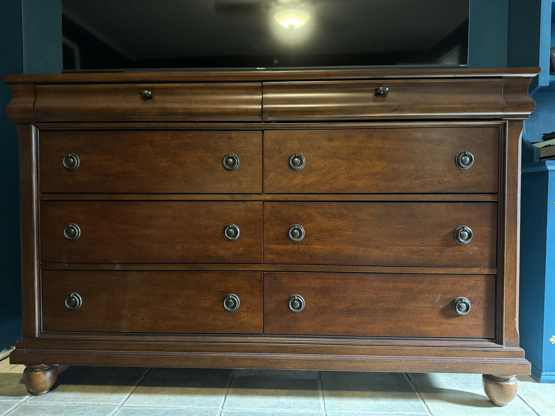This is a gently used double dresser by Birch Lane. Currently sells for $1,400 new. 8 drawers total - including 2 felt drawers 41'' H X 64'' W X 18'' D