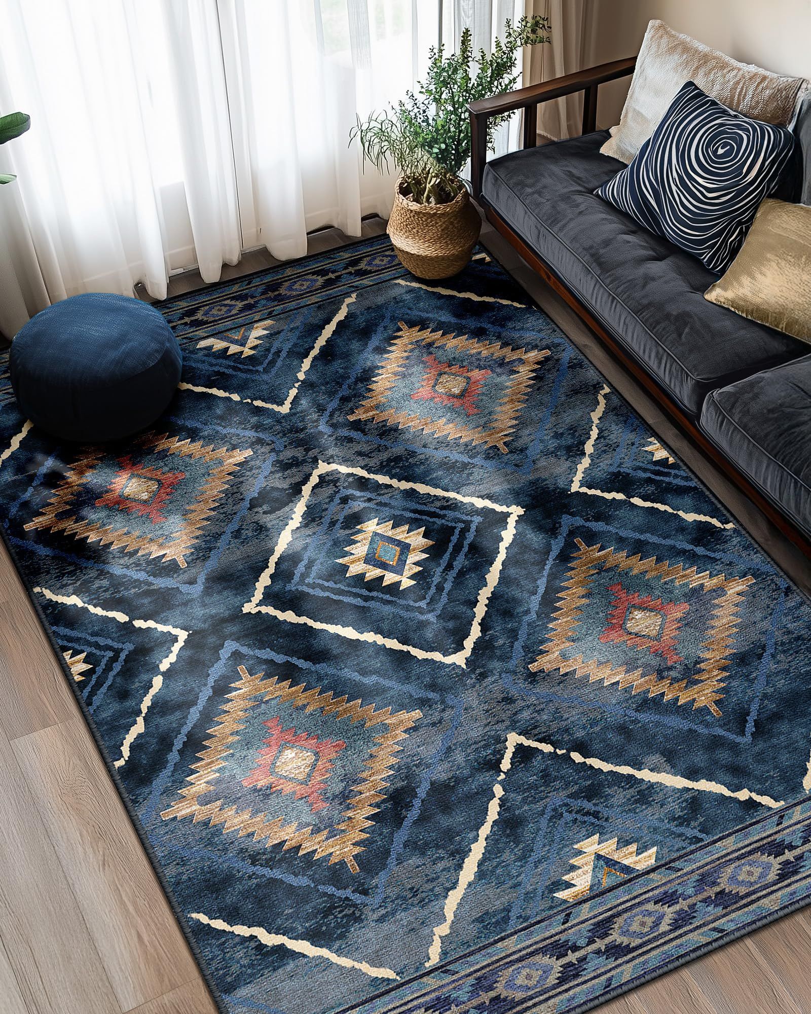 Area Rug 6x9 Rug Machine Washable Non-Slip Low Pile Print Pattern